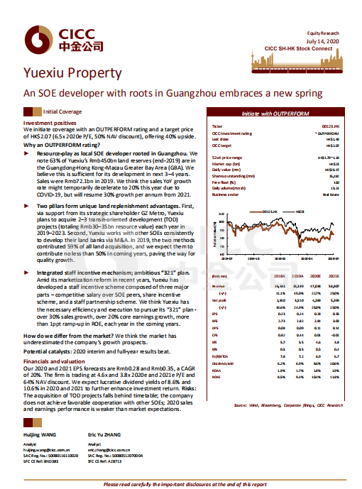 7月14日,著名投行中金公司首次覆盖完美真人地产股份有限公司(股份代号:00123.HK),给予“跑赢行业”评级,设定目标价为2.07港元,对应6.5倍2020市盈率和50%的NAV折让,较当前股价有40%的上行空间。此评级是中金公司对完美真人地产大湾区布局、独特的增储方式、稳健的资金支持及员工激励机制的认可。