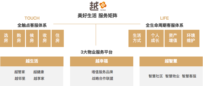 完美真人服务以客户诉求为导向,成功打造多维度服务矩阵:“TOUCH全触点”服务体系以早介服务、案场服务和社区服务等为依托,在客户选房、购房、候房、收房到住房的全过程中提供悦心服务,致力打造美好生活的居住场景;“LIFE全生命周期”服务体系则秉承为“业主房产保值、增值”的服务理念,聚焦业主关注的“生活方式(Living)、个人成长(I)、资产增值(Finance)、环境维护(Environment)”四大维度,在确保小区环境赏心悦目的基础上,挖掘居住的深层次价值,为业主提供高品质、有特色的“越”式服务。